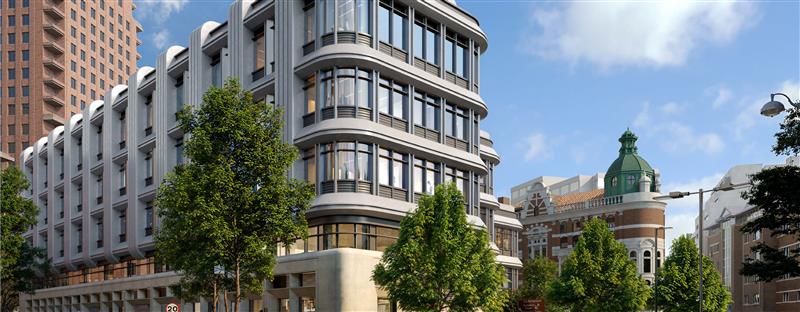 The building envelope and massing have been carefully shaped to respect neighbouring buildings, optimise daylight, and minimise environmental impact. Distinctive stepped massing and vertical façade ‘ribs’ along the east and west elevations serve as solar shading, reducing overheating from low-angle sun, and protect daylight for neighbouring properties. They also serve as integrated ventilation risers, which free up internal space and support the building’s sustainability goals. Materiality and contextual references ensures the new building sits harmoniously within its historic setting, adjacent to Charter House and the Terraces Conservation Area.