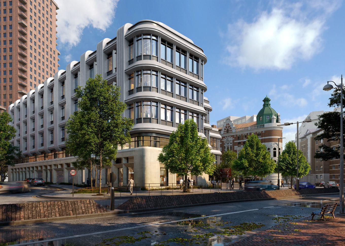 Blue and green infrastructure – including rain gardens, green roofs, and native planting – enhances climate resilience and supports sustainable drainage. The project also delivers measurable ecological benefits through a comprehensive Biodiversity Net Gain (BNG) strategy, creating habitats for pollinators and urban wildlife and ensuring a net gain in biodiversity value through on-site and off-site enhancements.