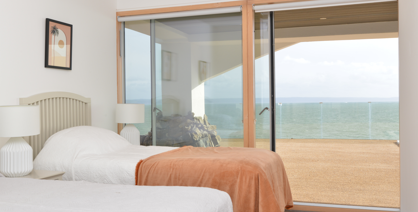 The property has its own private access road and a striking, cantilevered driveway to the garage, as well as direct access from the garden to the foreshore and CAA landing rights. Heating is provided by an air-sourced heat pump.