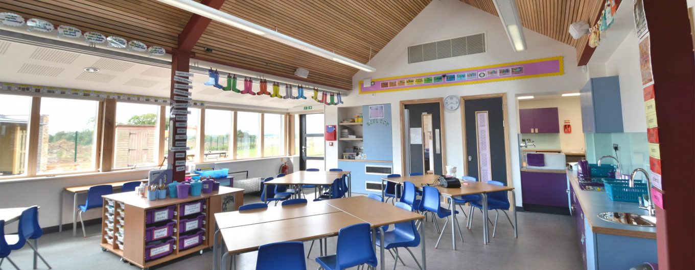 The original school building was built in 1870 but moved locations in the village in 2015. The new educational facility is a 21st century learning environment, within a very traditional building design.
