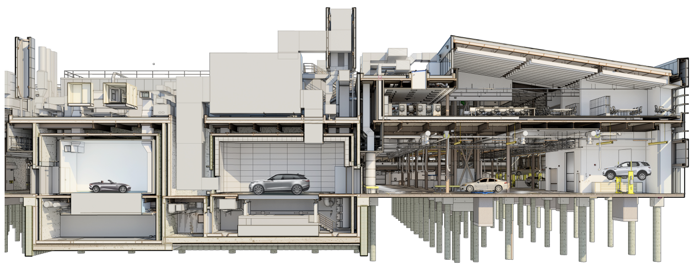 We coordinated the phased delivery of 40 heavily serviced acoustic test chambers, each tailored to specific testing needs, including full-vehicle, powertrain and component testing. These chambers varied in size, acoustic cut-off frequency, climate control and noise criteria. Extensive plant areas were integrated both at high level and in the basement to support complex MEP systems.